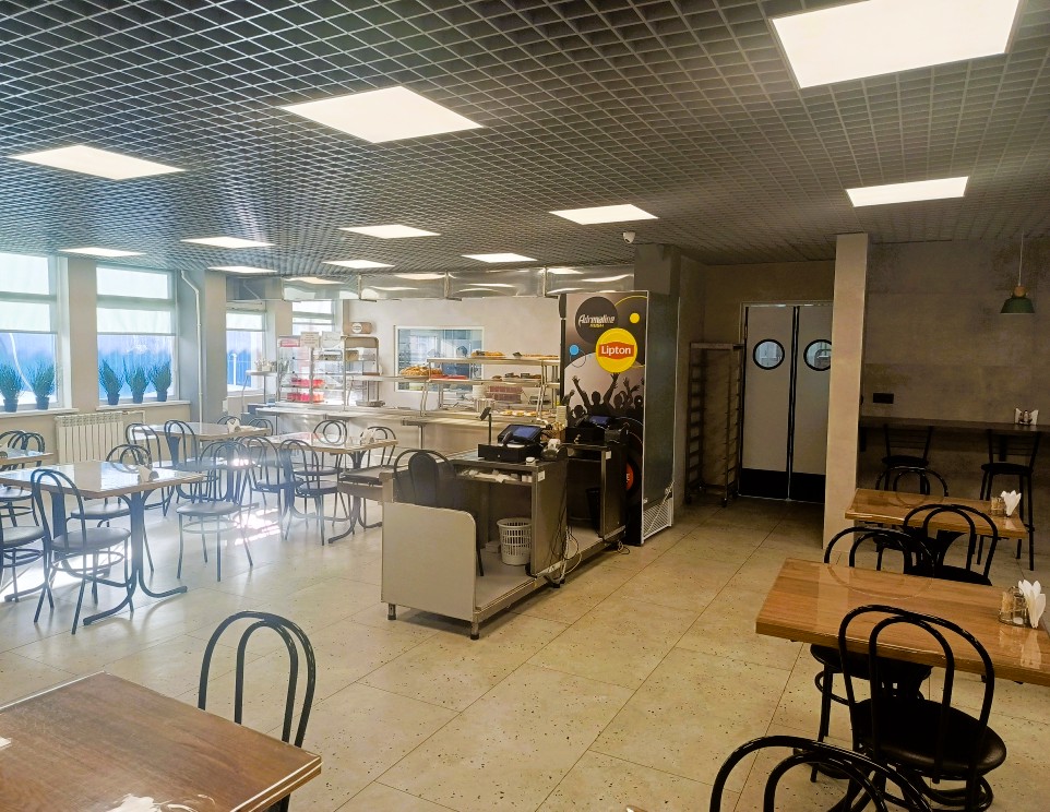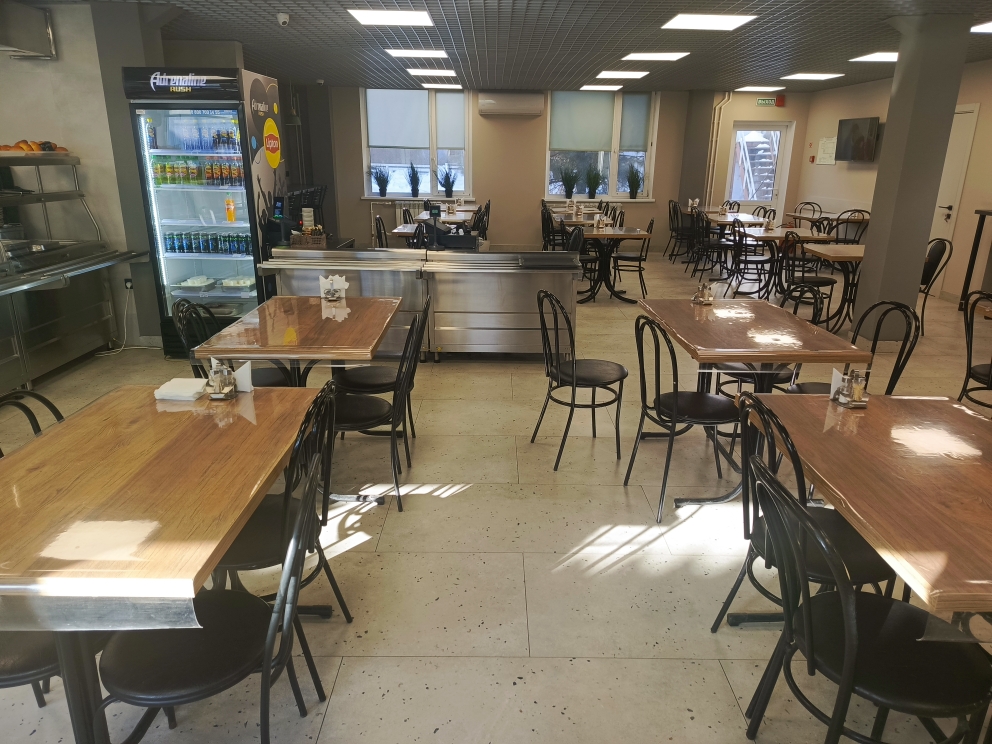 На территории Атлант-Парка работает столовая. График работы: понедельник-пятница с 08:00 до 16:00. Утром здесь предлагаются завтраки, а с 11:30 до завершения рабочего дня представлен широкий ассортимент первых и вторых блюд, гарниров, салатов, напитков и собственной выпечки. Можно покушать в зале, а также